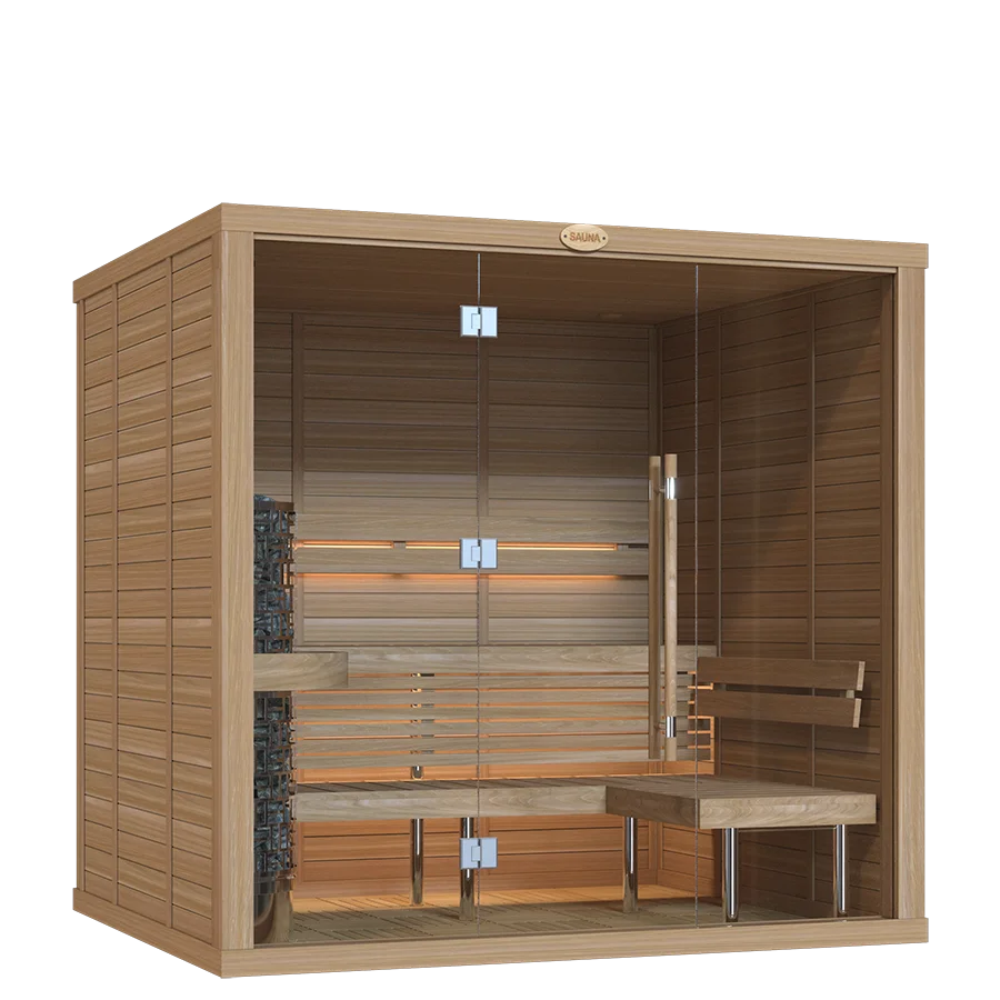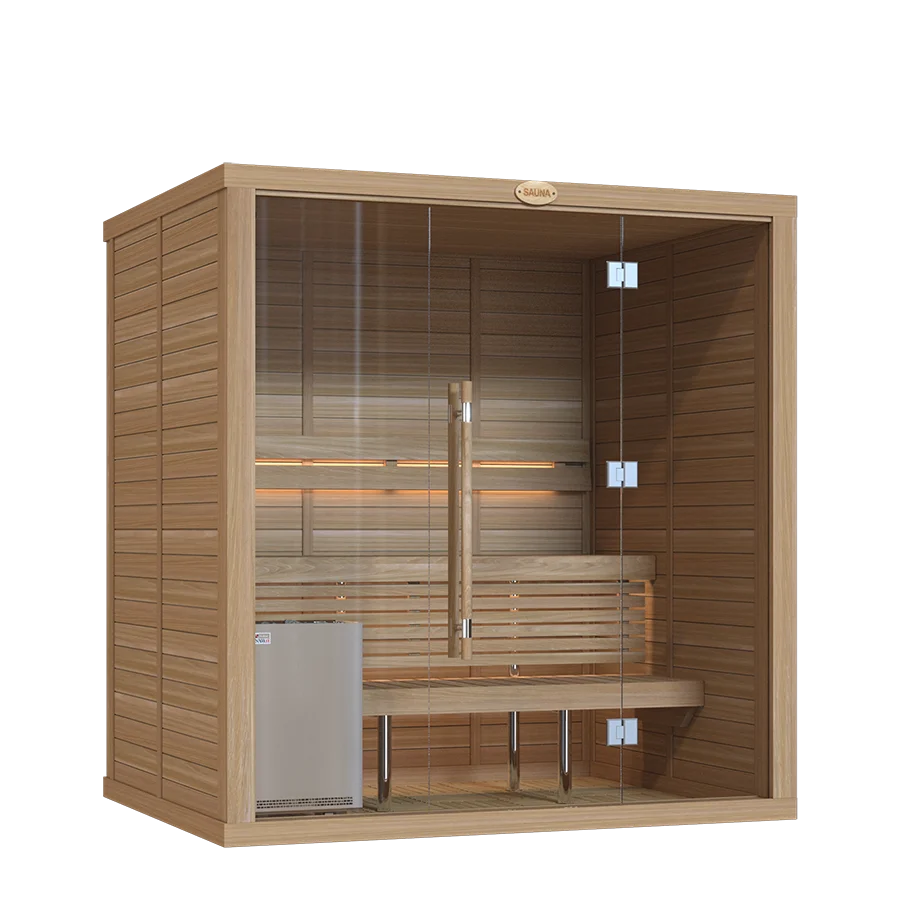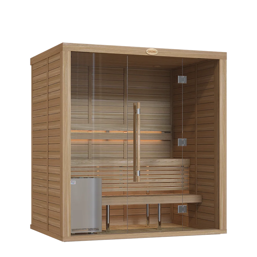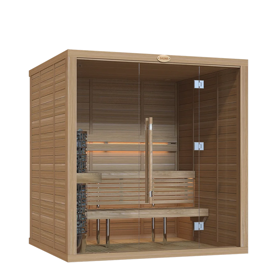 Our sauna rooms are sold as complete sets, including premium heaters and essential accessories crafted by SAWO.