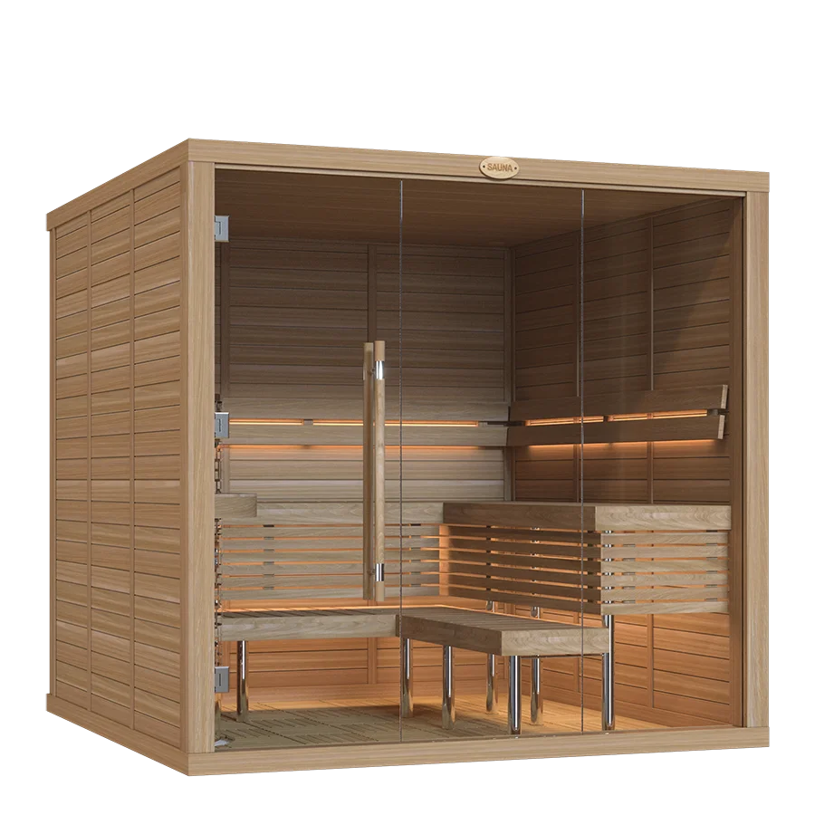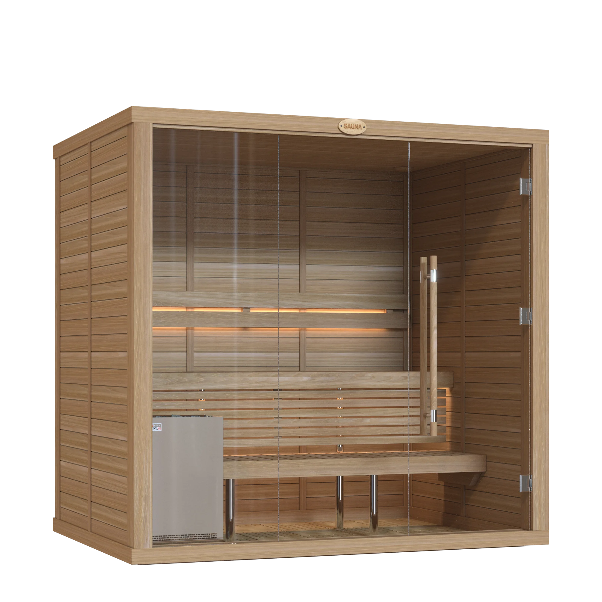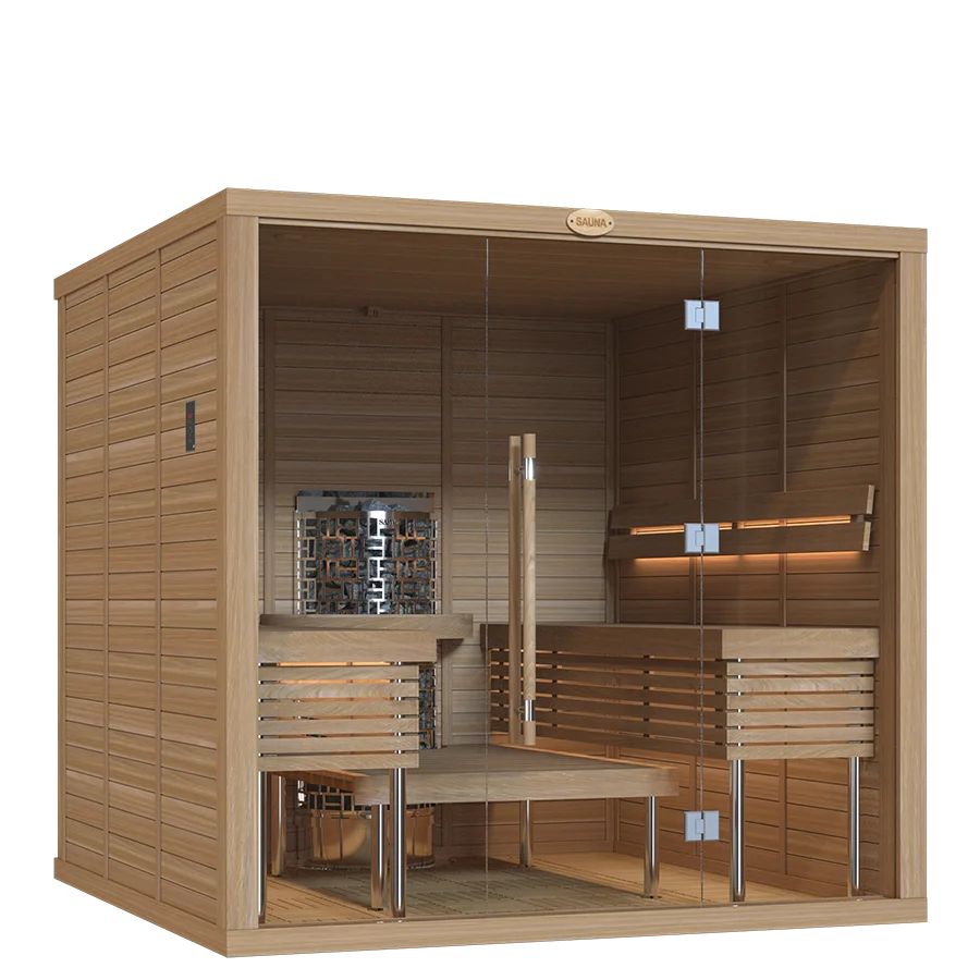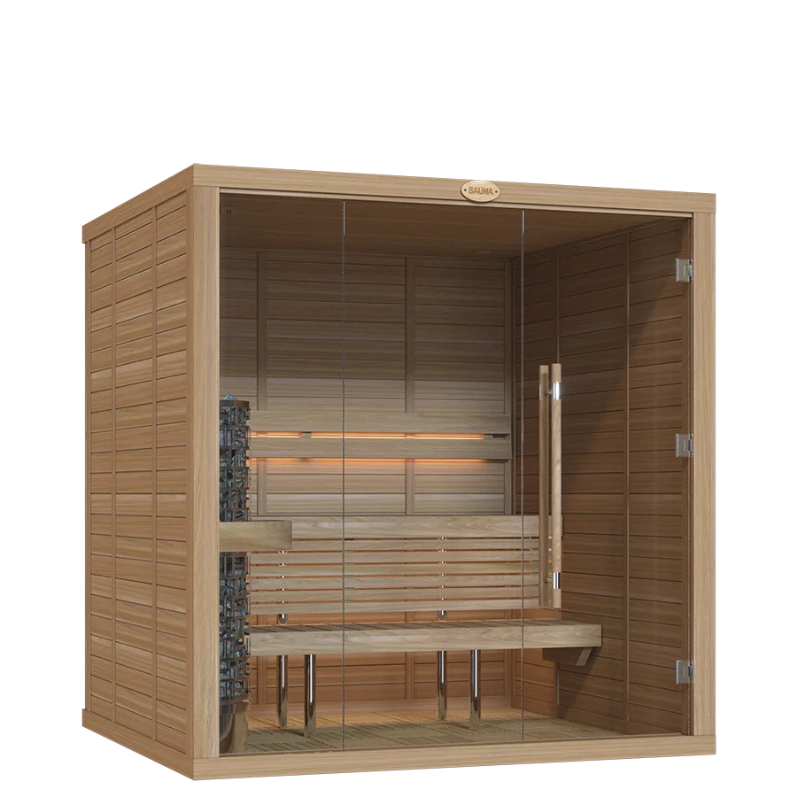Our sauna rooms are sold as complete sets, including premium heaters and essential accessories crafted by SAWO.
